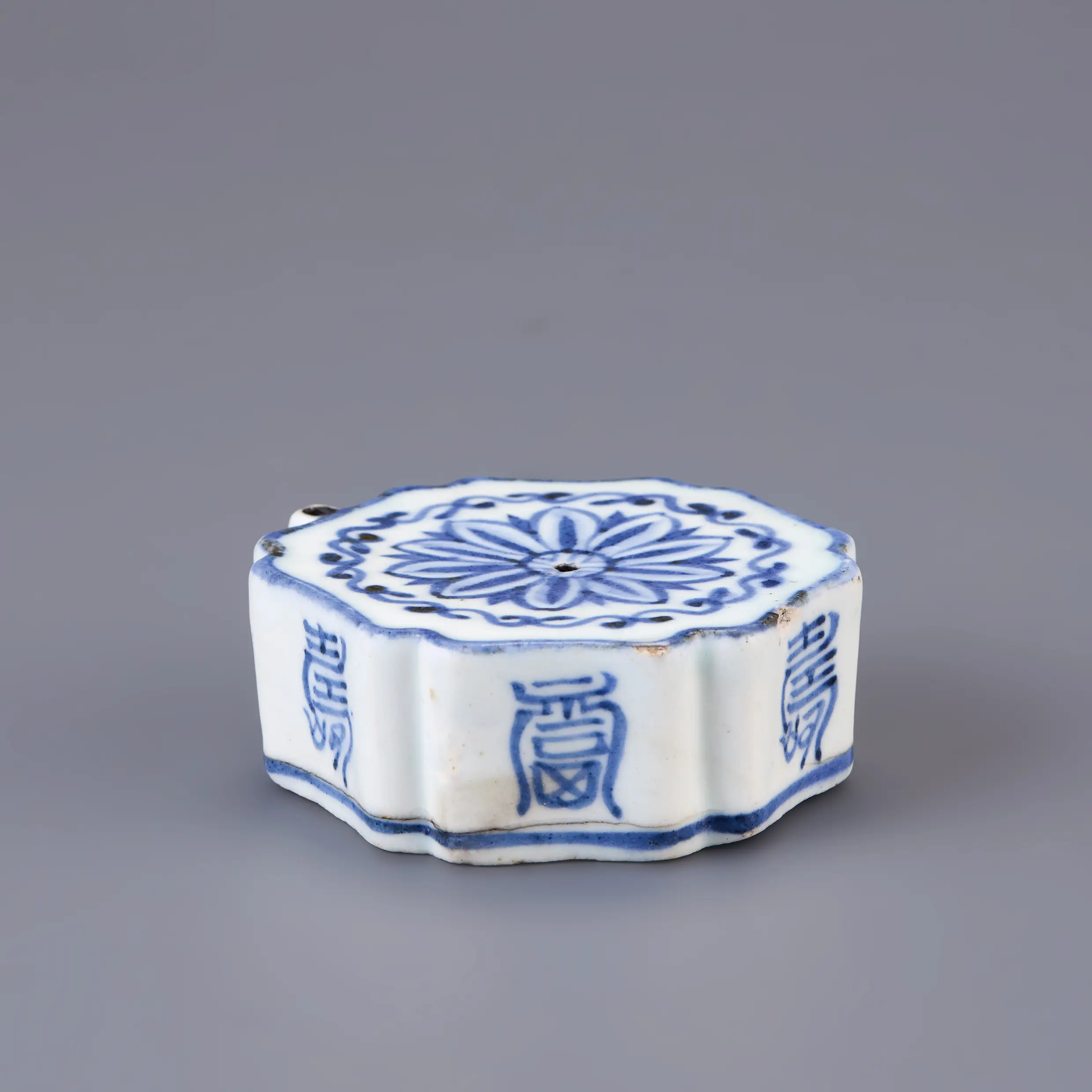 백자청화수복국화문화형연적